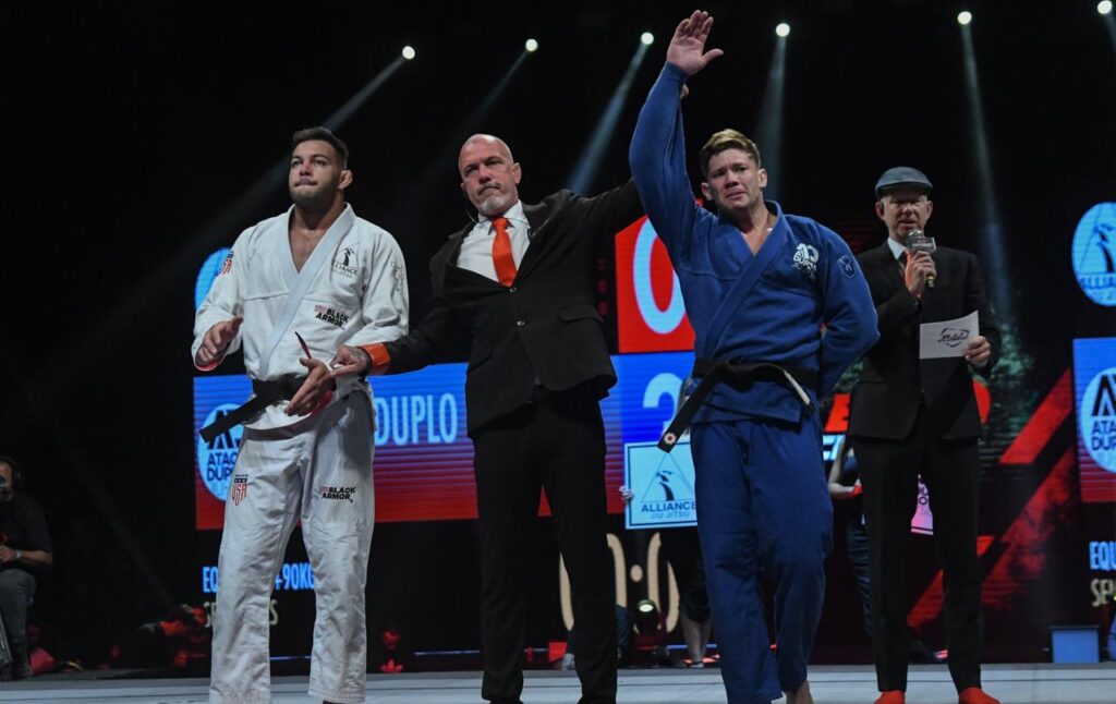 A reação da Alliance veio em seguida. Vinicius Martins venceu Gabriel Galvão por critério de desempate (última pontuação, após empate em 1 a 1). Leonardo Ferreira impôs um domínio sobre Manoel Júnior, vencendo por 9 a 0, e Amanda Hening superou Simone de Abreu por 1 a 0, empatando o confronto em 3 a 3. No entanto, no combate decisivo, Harryson Santana mostrou consistência e venceu Marcus “Scooby” por 3 a 0, selando a classificação da Ataque Duplo com o placar final de 4 a 3.