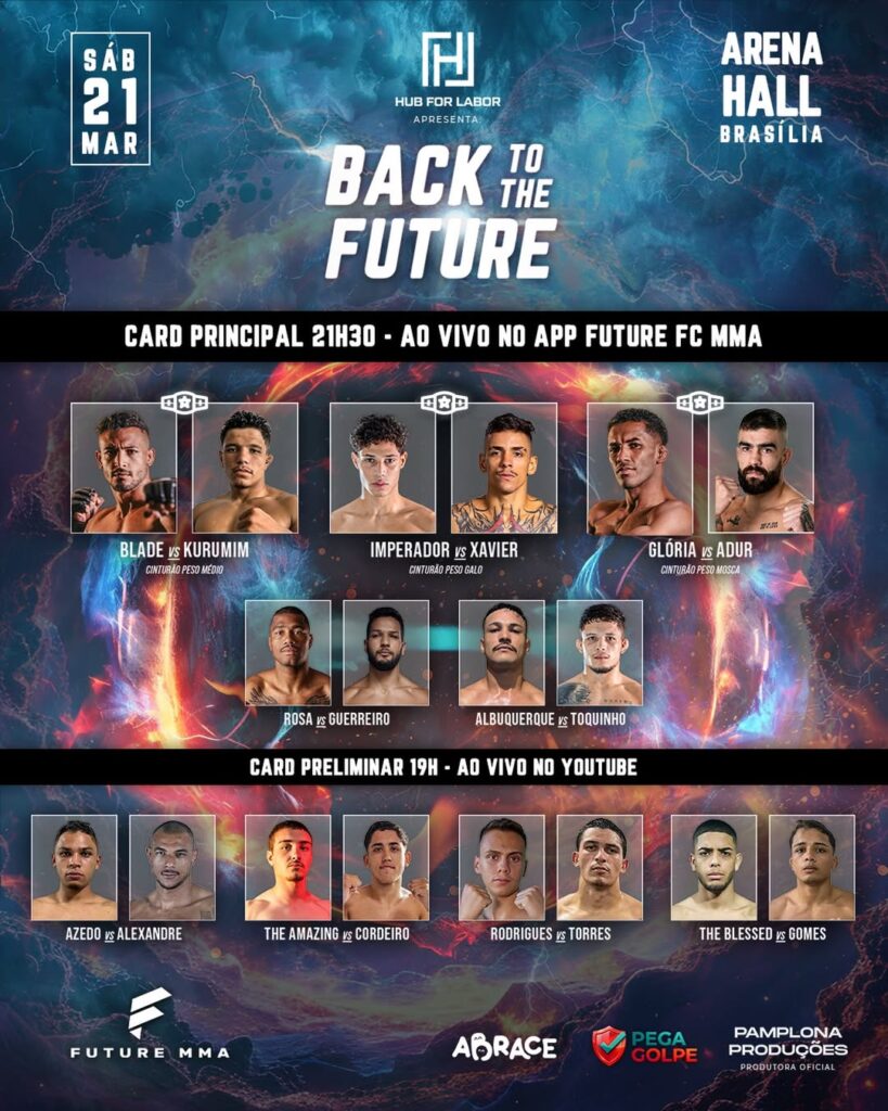 Reconhecido como o evento brasileiro que “mais contribui para o futuro do MMA nacional”, o Future 17 traz um card histórico com três disputas de título. No topo da lista, o prodígio Adriano ‘Imperador’ Sousa, invicto com um cartel de 7-0, optou por vagar seu título nos moscas para buscar o trono dos galos (61 kg) contra o atleta local Anderson Xavier, da tradicional equipe Cerrado MMA.